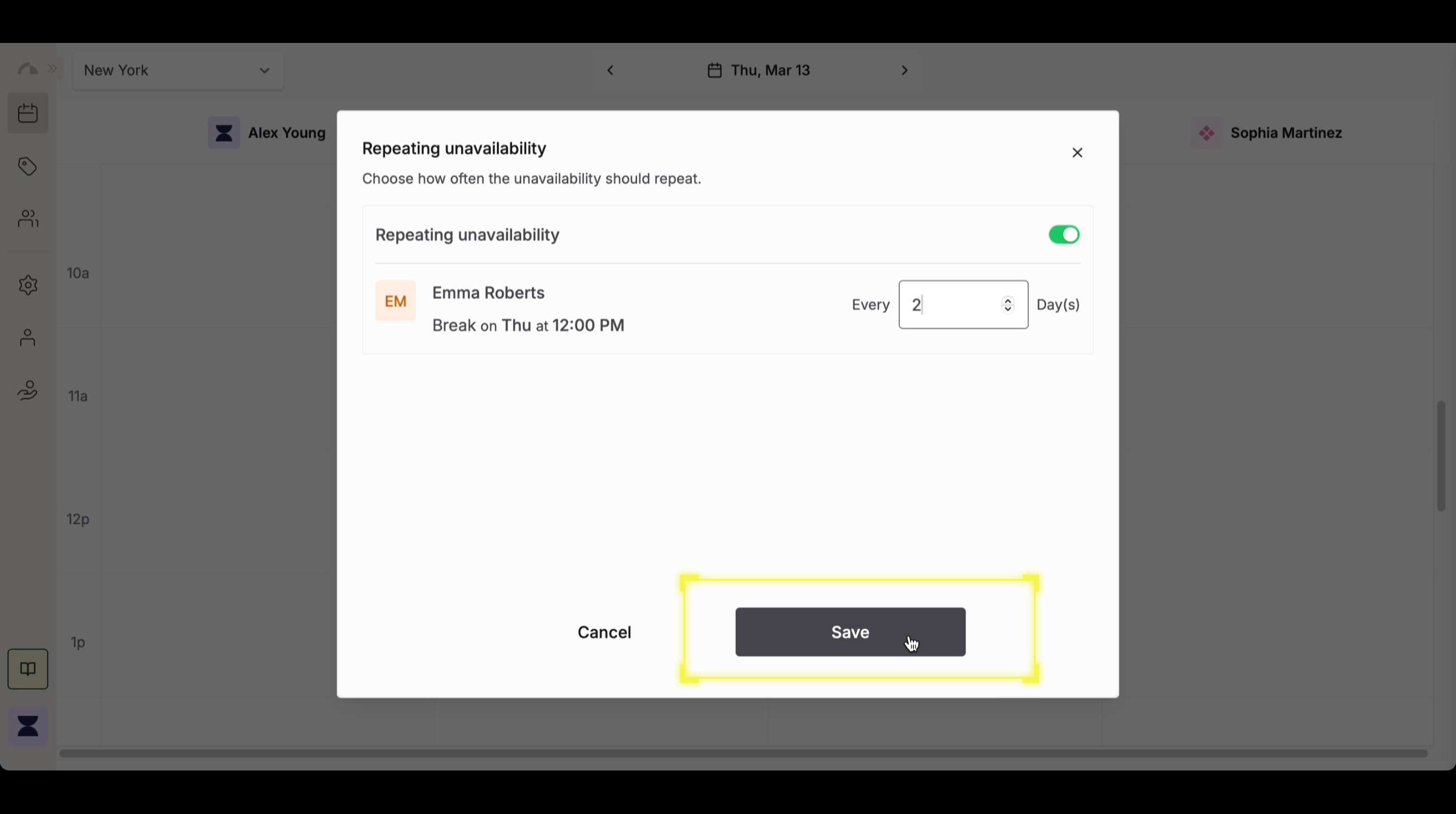 Confirm and Save Recurring Unavailability